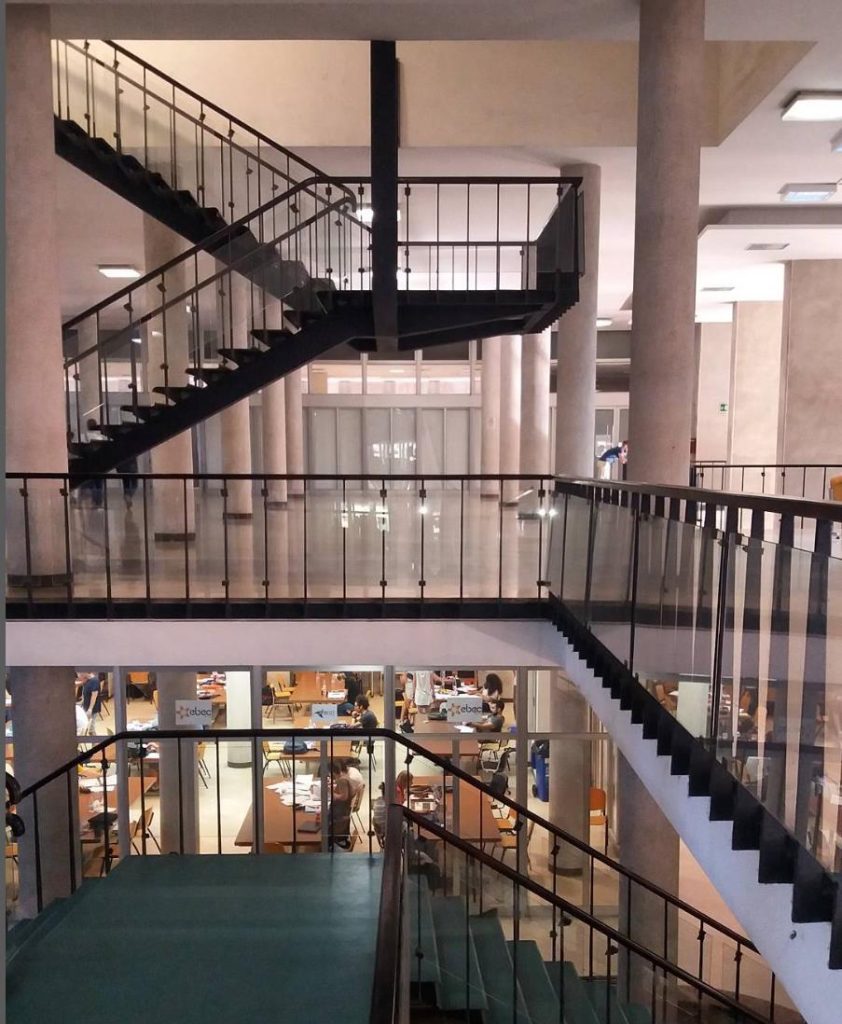 On the first level are located the main classrooms, the Aula Magna, the offices of the presidency, and the drawing rooms in the opposite wing. On the upper levels, classrooms are arranged in double rows of varying sizes, with central rooms illuminated from above. Such features make the Polytechnic School and Basic Sciences well-suited to hosting prestigious conferences and large-scale events.
